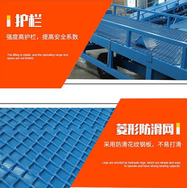 濱州登車橋-移動式登車橋-固定式登車橋-安徽液壓登車橋主要技術指標:大動負載:6T大靜負載:6T大寬度:2M大長度:4M電動液壓式法國進口組裝登車橋用途登車橋移動登車橋移動式液壓登車橋廣泛用于無裝卸設備的貨臺及流動裝卸場所,是與叉車配合使用的貨物輔助設備。